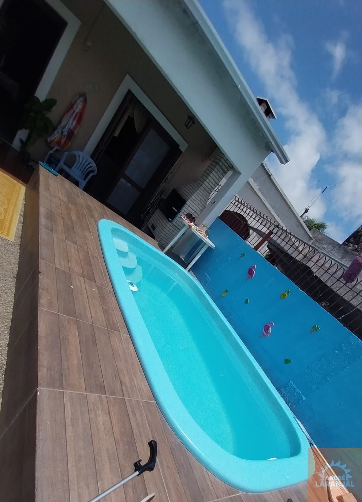 Casa Alvanária- Próximo da Praia- Frente Norte; 02 dormitórios, sala, cozinha, banheiro, peças auxiliares, churrasqueira, piscina e pátio.