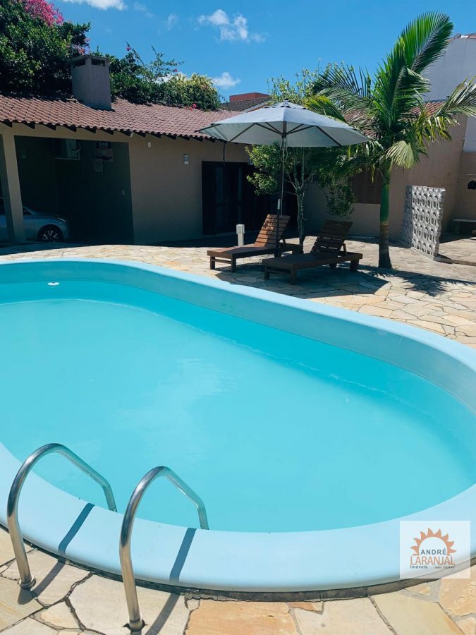 Casa: 04 dormitórios, 02 banheiros, sala de estar,cozinha, área de serviço, churrasqueira, espaço gourmet com salão de festas, piscina, 02 alpendres, 02 vagas de garagem e patio.
